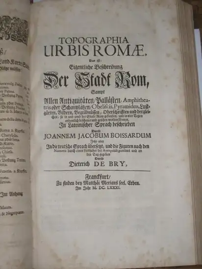 Merian. - Boissard, Jean Jacques (Text) / Dieterich de Bry (Illu.): Topographia Urbis Romae, Das ist: Eigentliche Beschreibung Der Stadt Rom. Sampt Allen Antiquitäten, Pallästen, Amphitheatris oder Schauplätzen, Obeliscis, Pyramiden, Lustgärten, Bildern,