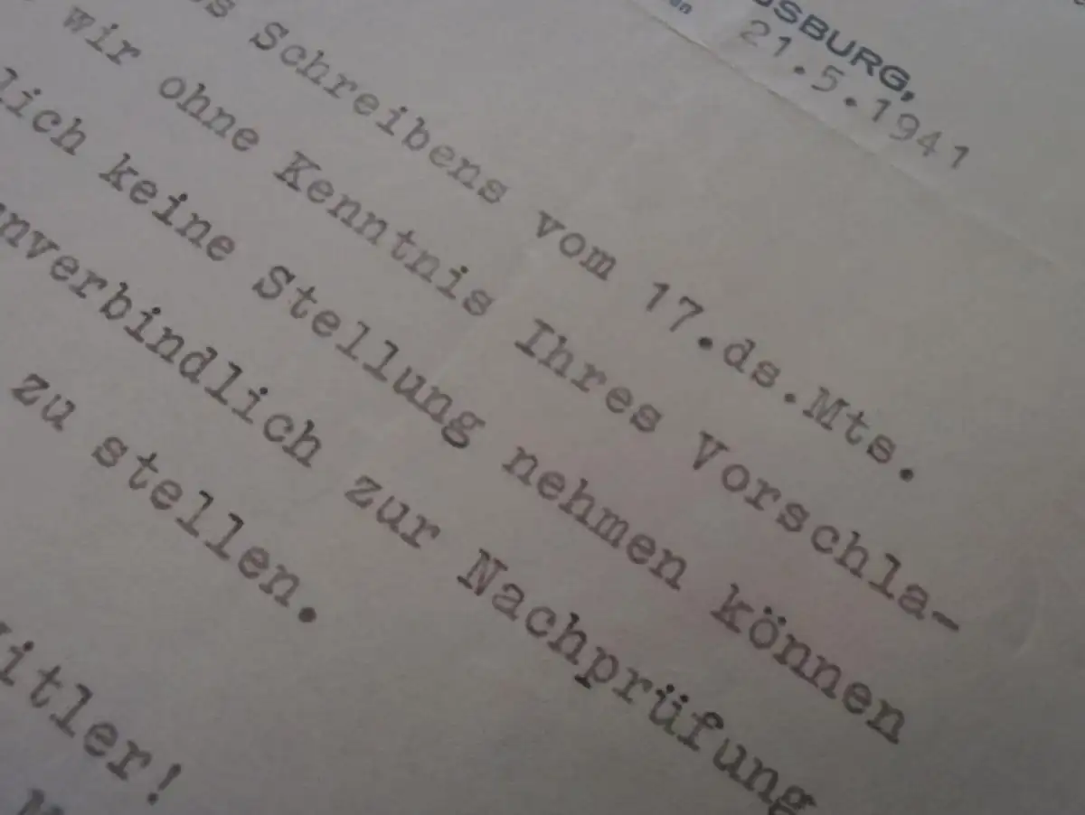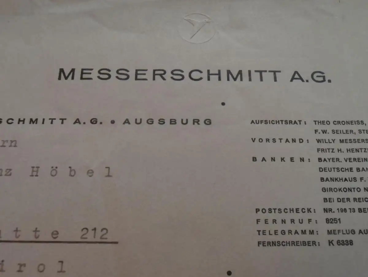Messerschmitt AG in Augsburg - 21.5.1941 -Brief mit Anwortschreiben , Erfindung , Franz Höbel in Reutte i. Tirol !!