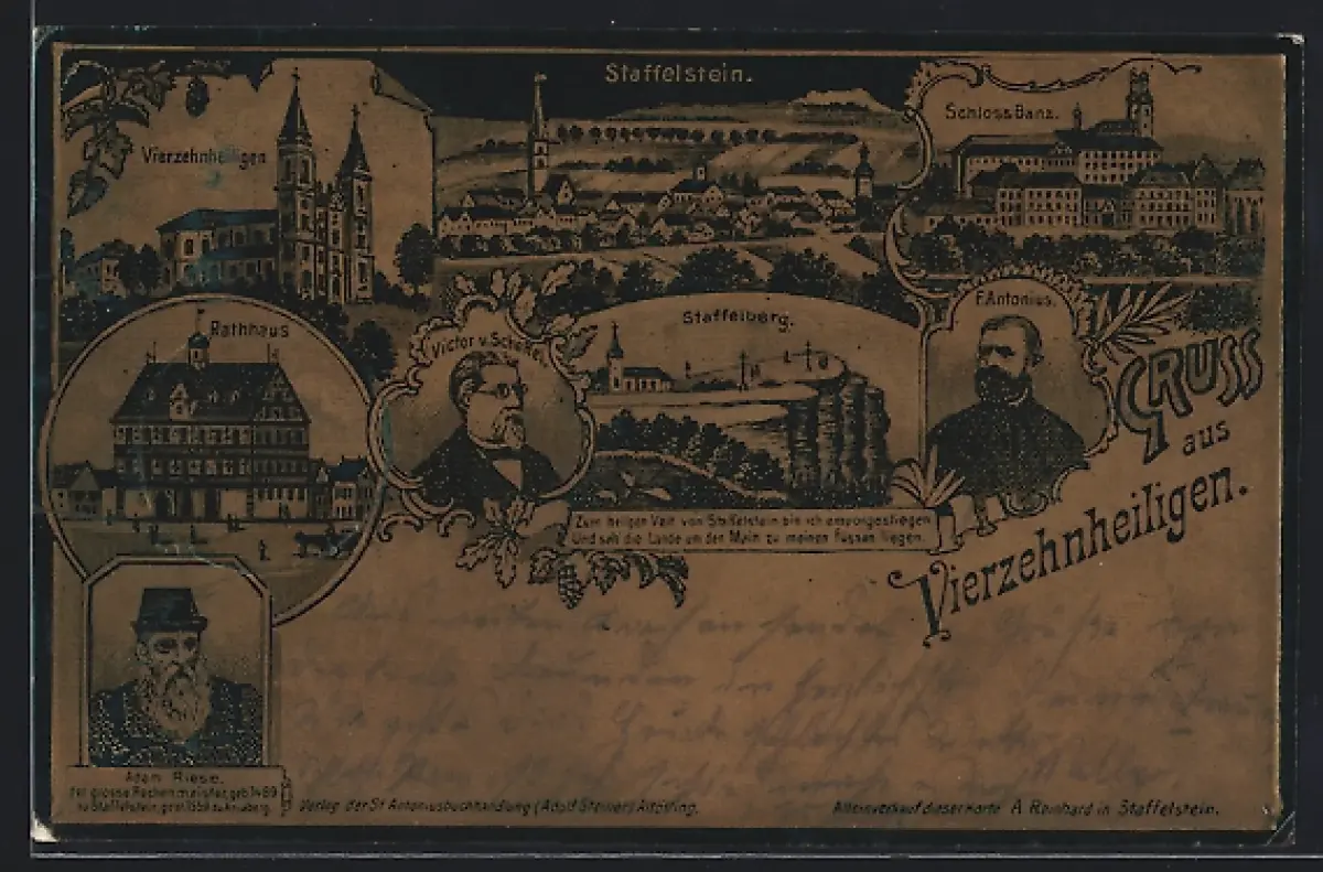 Metallfolie-AK Vierzehnheiligen, Kirche, Rathaus, Schloss Banz
