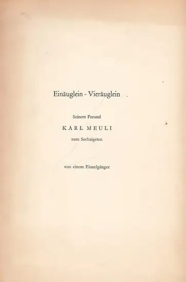 Titel: Einäuglein - Vieräuglein. Seinem Freund Karl Meuli zum Sechzigsten