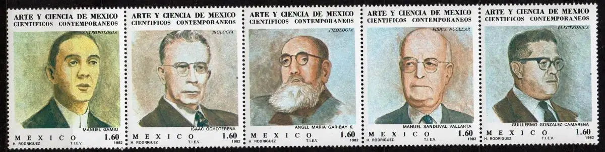 Mexiko, Mi-Nr. 1840 - 1844 **, kompl. im 5´er-Streifen, Wissenschaftler