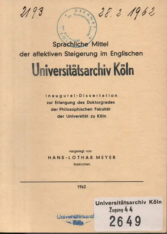 Meyer, Hans-Lothar: Sprachliche Mittel der affektiven Steigerung im Englischen. (Diss.).
