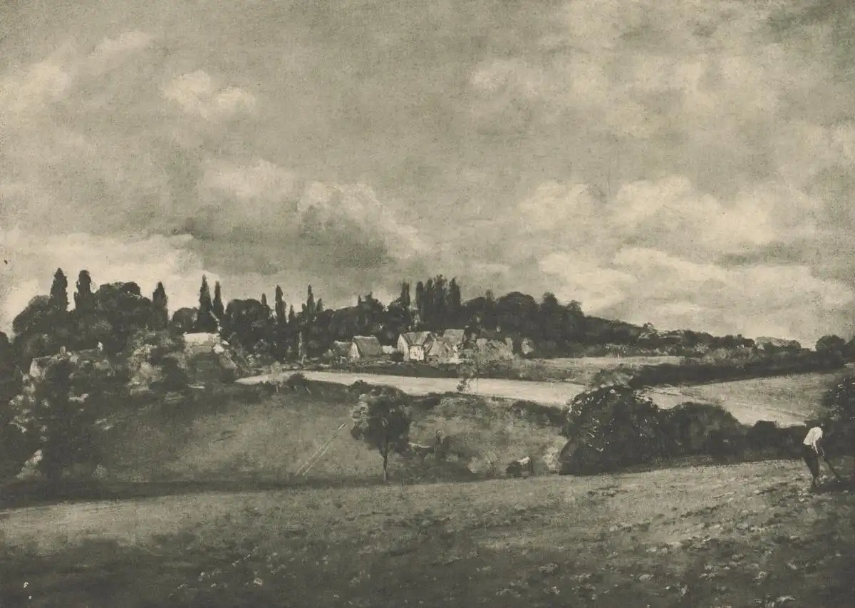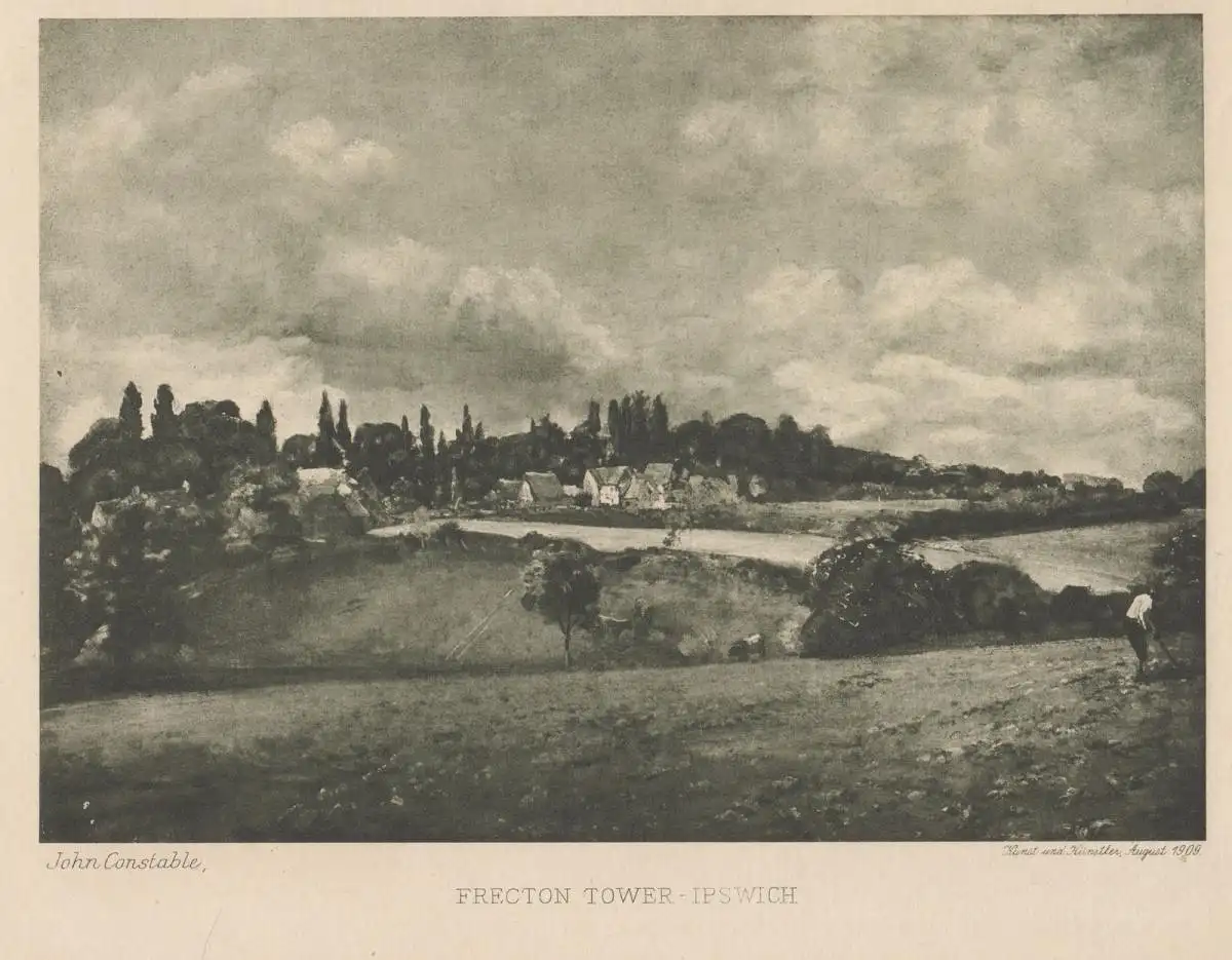 Bemerkungen: Zustand: Gut. Altersbedingt minimal fleckig und minimal gebräunt // Mezzotinto von John Constable. Die Betitelung befindet sich mittig unterhalb des Motivs, welches ein Bildmaß von 15,0 x 21,0 cm aufweist. im Papier befindet sich schwach erkennbar ein Wasserzeichen, welches leicht durchscheint.