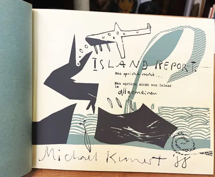 Titel: Michael Kunert: Island Report. Man spricht ... Man spricht nicht von Island im allgemeinen. Eines von 100 vom Künstler im Impressum signierten und datierten Exemplaren in Siebdruck