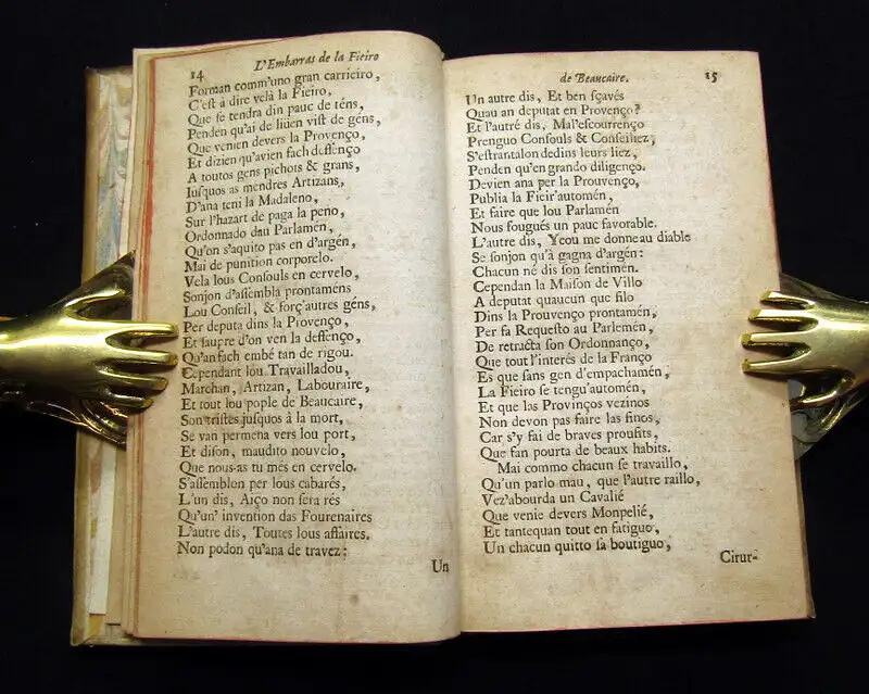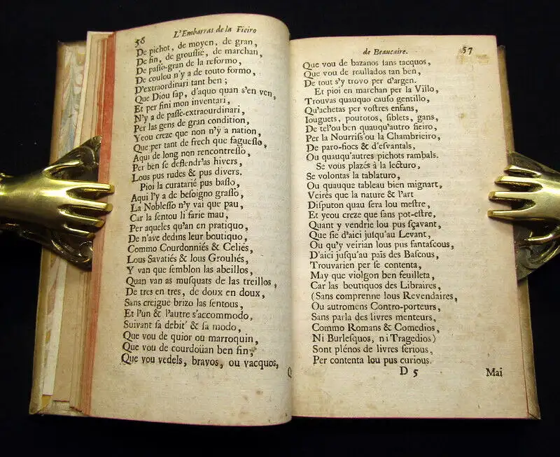 Sprachgeschichtlich interessante Adaption der alten südfranz. Burleske, bei Brunet verzeichnet in der "Recueil de poetes gascons"