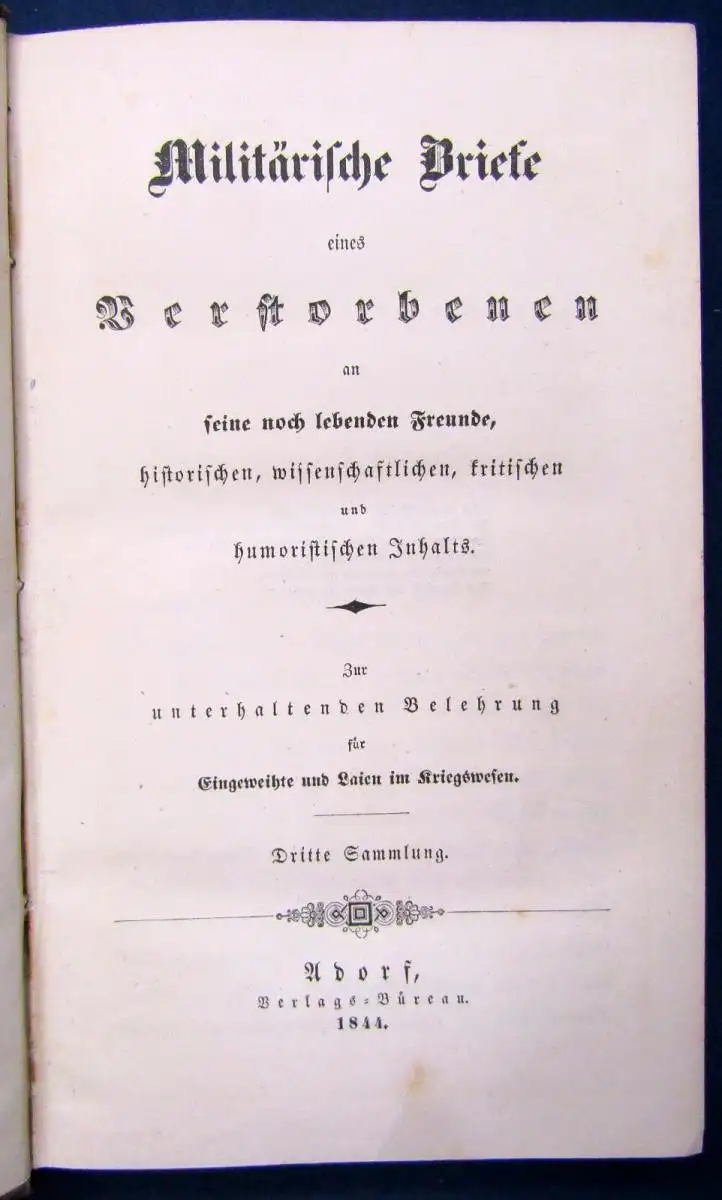Militärische Briefe eines Verstorbenen an seine noch lebenden Freunde,historischen, wissenschaftlichen, kritischen und humoristischen Inhalts.