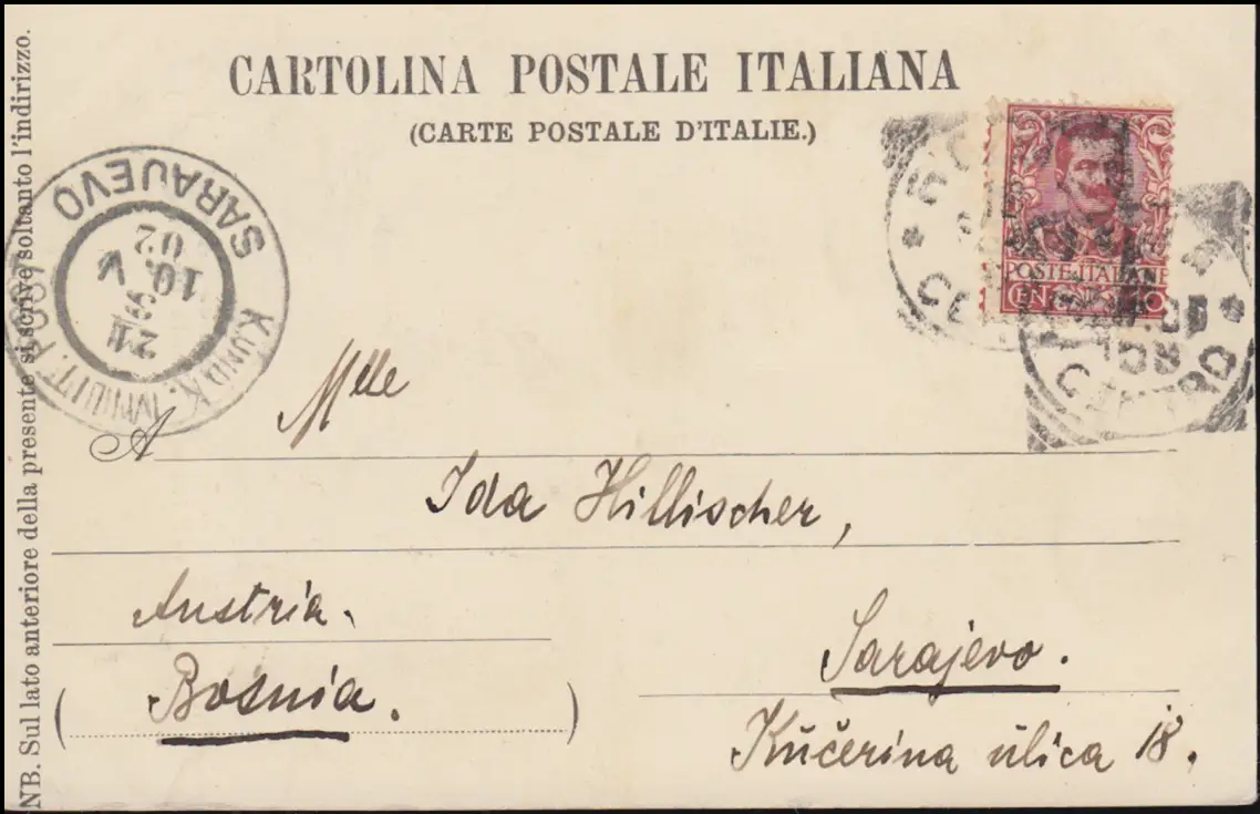 Poste militaire K. et K Milit. Post SARAJEVO 21.3.1902 sur AK Eglise ROMA 1902