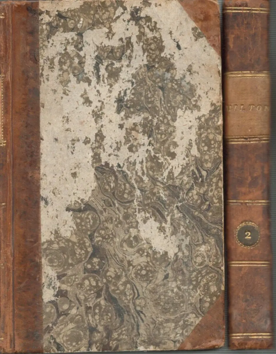 [1]. Paradise Lost (Book 1 to 9). Samuel Johnson: essay on Milton. [2]. Paradise Lost (Book 10 to 12). Paradise Regained, Samson Agonistes, L'Allegro, Il Penseroso, Sonnets, Psalms, etc. - Deckelbezüge beschabt, Papier gering stockfleckig. Ohne die auf dem Titel erwähnten Frontispize, 2mm messendes Löchlein im Vorwortblatt