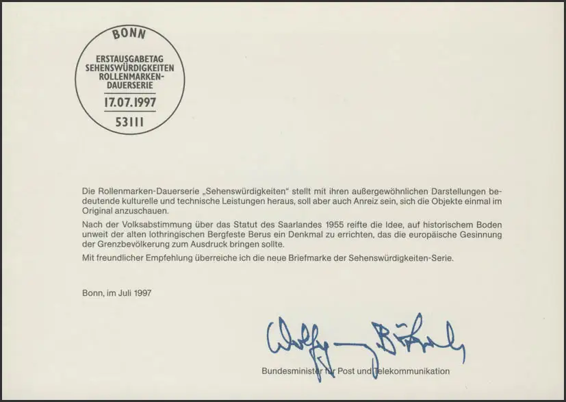 Une offre dans Timbres Cartes ministre & cartes spéciales RFA - 957 autres offres dans cette catégorie