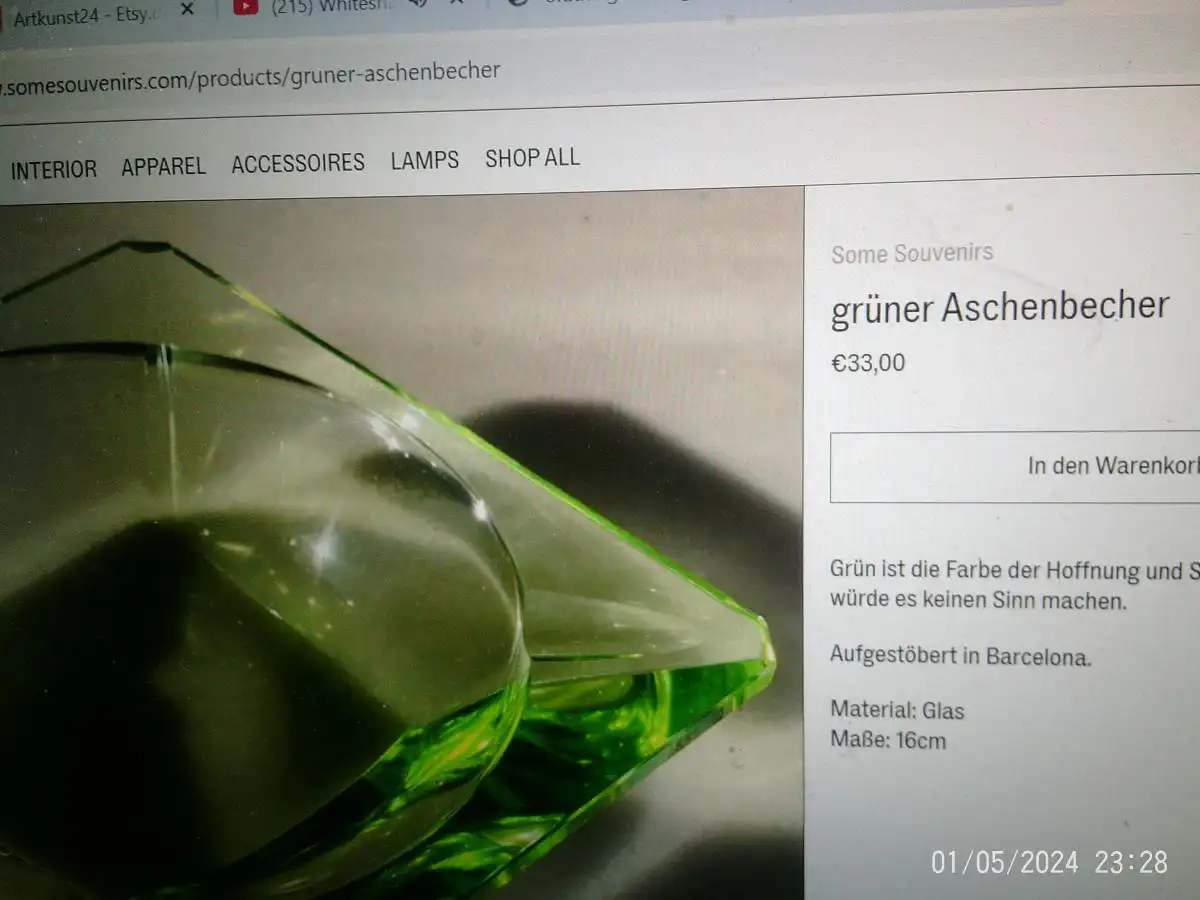 Mini heller grüner Glas-Aschenbecher Vintage 50er/60er Jahre