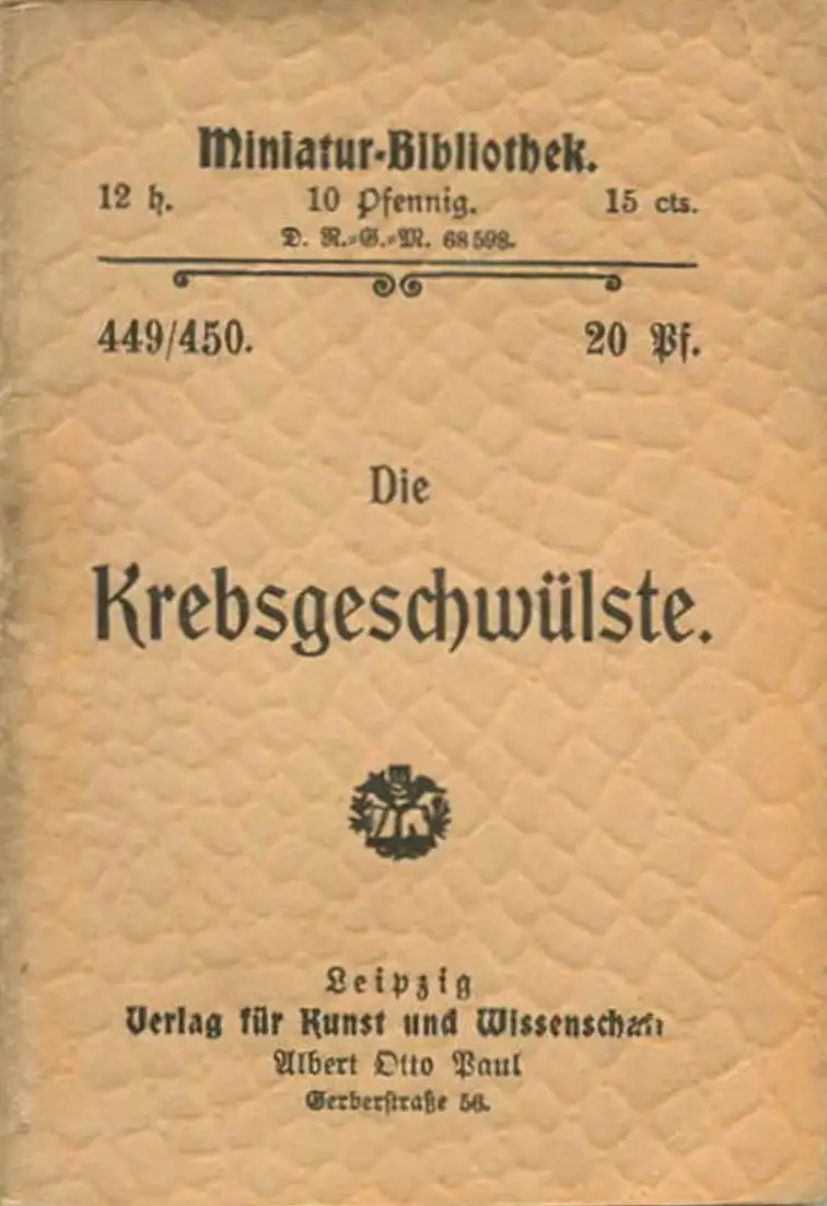 Miniatur-Bibliothek Nr. 449/450 - Die Krebsgeschwülste - 8cm x 12cm - 82 Seiten ca. 1900 - Verlag für Kunst und Wissensc