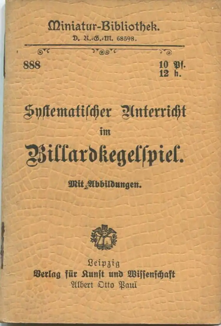 Miniatur-Bibliothek Nr. 888 - Systematischer Unterricht im Billardkegelspiel mit Abbildungen - 8cm x 12cm - 48 Seiten ca. 1900 - Verlag für Kunst und Wissenschaft Albert Otto Paul Leipzig - Gebrauchsspuren (G49676)