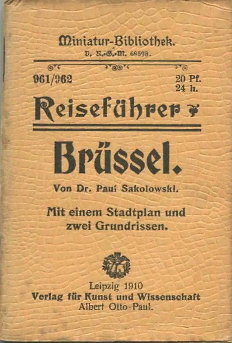Miniatur-Bibliothek Nr. 961/962 - Reiseführer Brüssel mit einem Stadtplan von Dr. Paul Sakolowski - 8cm x 12cm - 96 Seiten 1910 - Verlag für Kunst und Wissenschaft Albert Otto Paul Leipzig - Gebrauchsspuren (G49736) Ü
