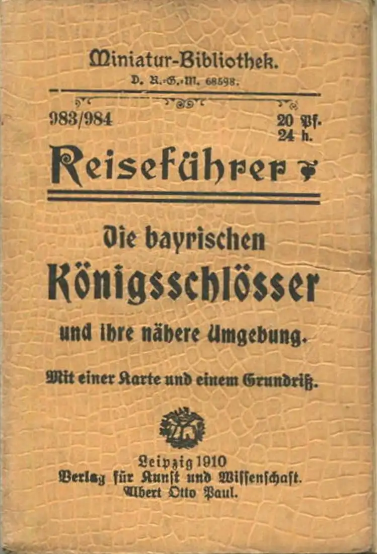 Miniatur-Bibliothek Nr. 983/984 - Reiseführer Die bayrischen Königsschlösser und ihre nähere Umgebung mit einer Karte - 8cm x 12cm - 126 Seiten 1910 - Verlag für Kunst und Wissenschaft Albert Otto Paul Leipzig - Gebrauchsspuren (G49753) Ü