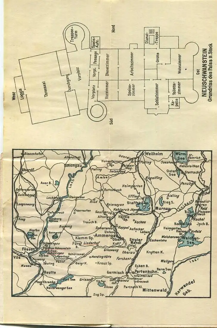 Miniatur-Bibliothek Nr. 983/984 - Reiseführer Die bayrischen Königsschlösser und ihre nähere Umgebung mit einer Karte -