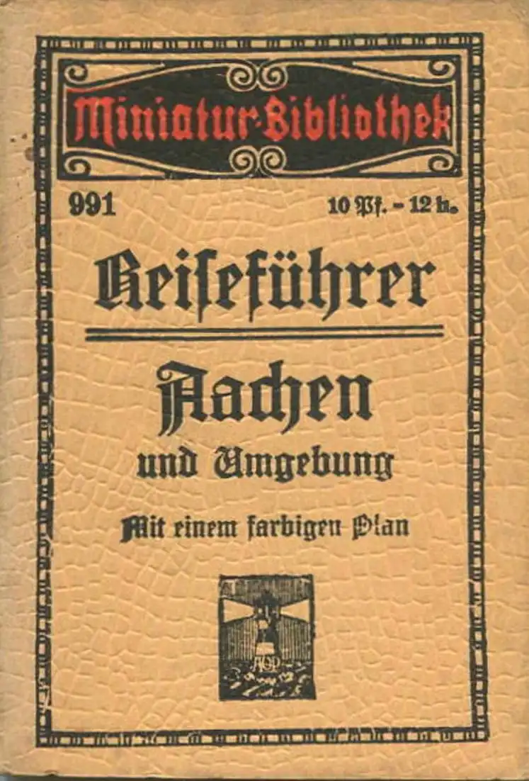 Miniatur-Bibliothek Nr. 991 - Reiseführer Aachen und Umgebung mit einem farbigen Plan von Dr. Paul Sakolowski - 8cm x 12cm - 64 Seiten ca. 1910 - Verlag für Kunst und Wissenschaft Albert Otto Paul Leipzig - Gebrauchsspuren (G49758)