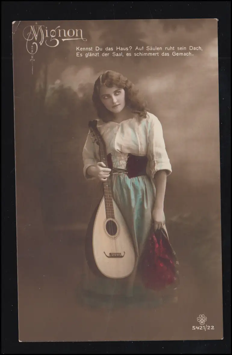 Mode AK Mignon - Fille avec de longs cheveux et mandoline, inutilisé
