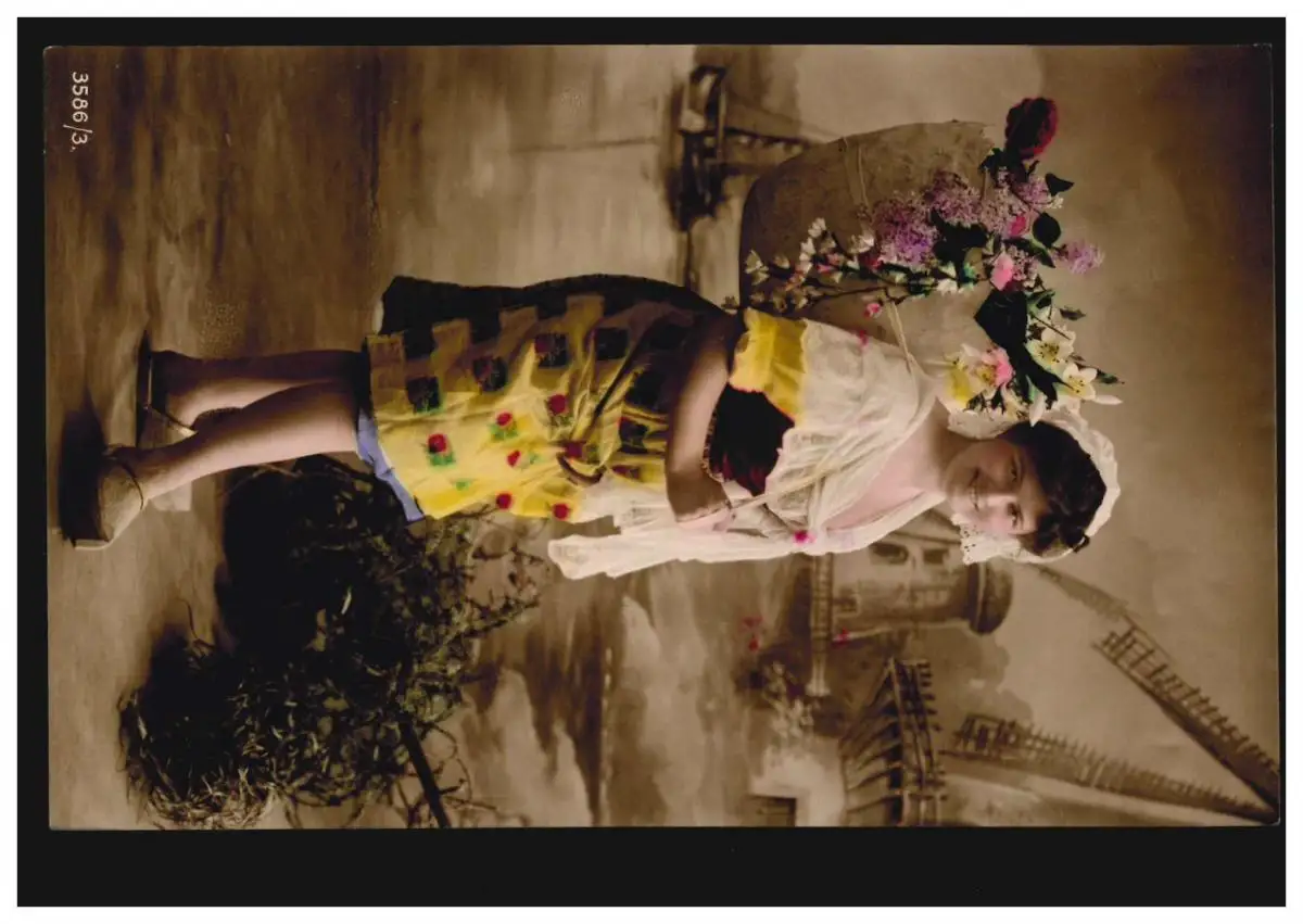 Mode AK femme en costume hollandais devant des moulins à vent, LEIPZIG 13 k 25.3.1909