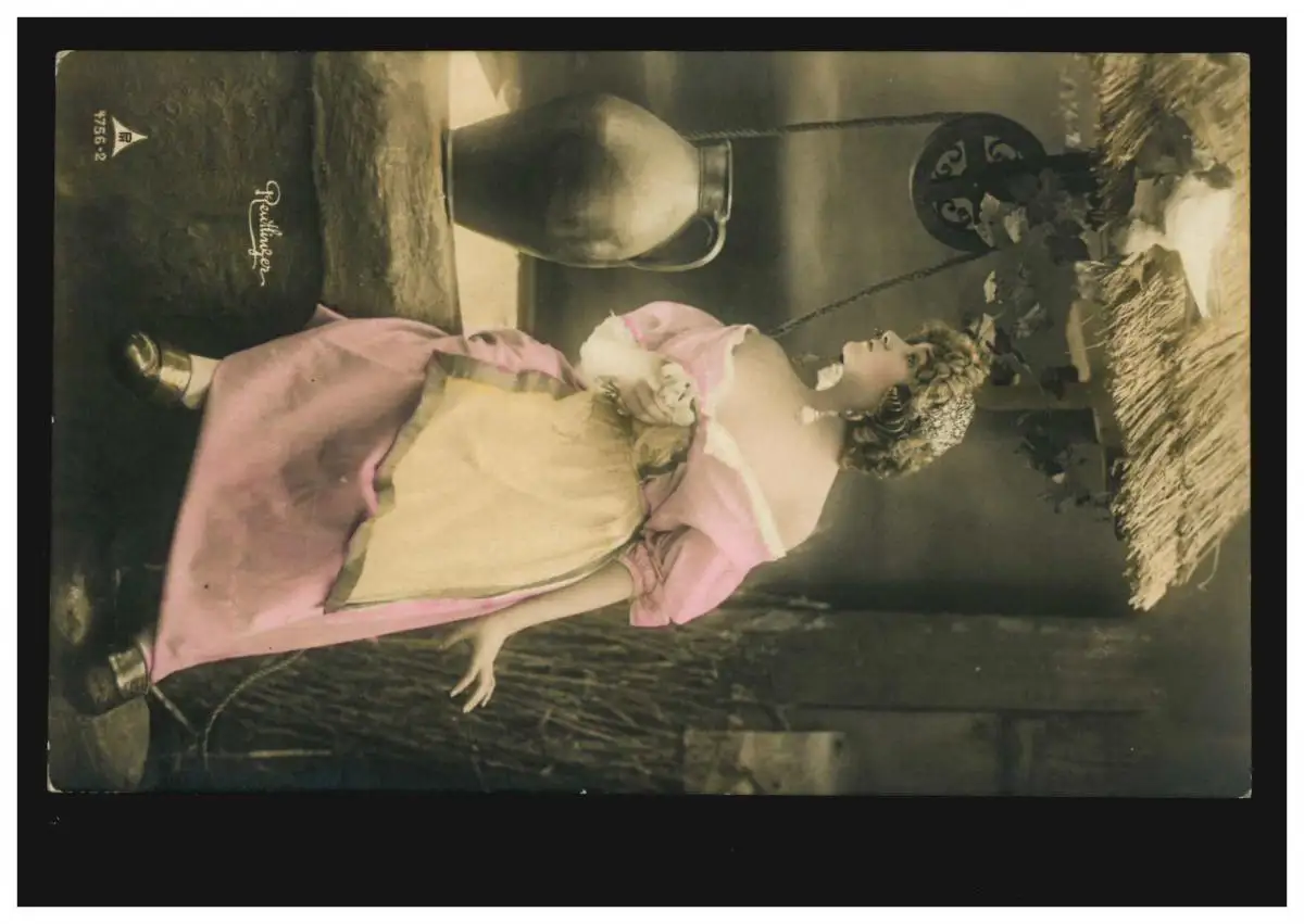 Mode AK femme en robe rose avec cruche sur la fontaine, Rutlinger, couru 7.6.1911