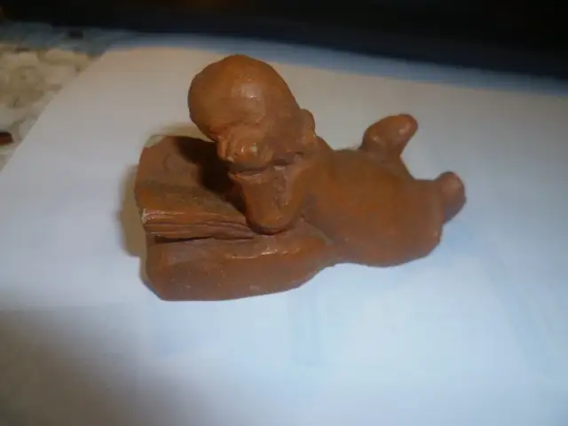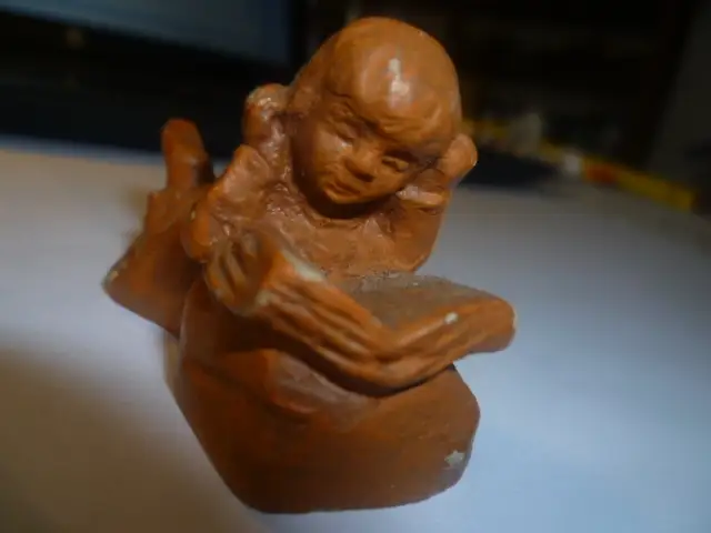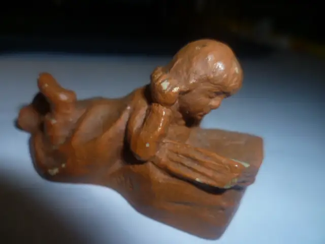 Modell eines lesenden auf dem Boden liebenden Mädchens Keramik in braun bemaltZeit des Historismus um 1890 H : 45 mm signiert DTS