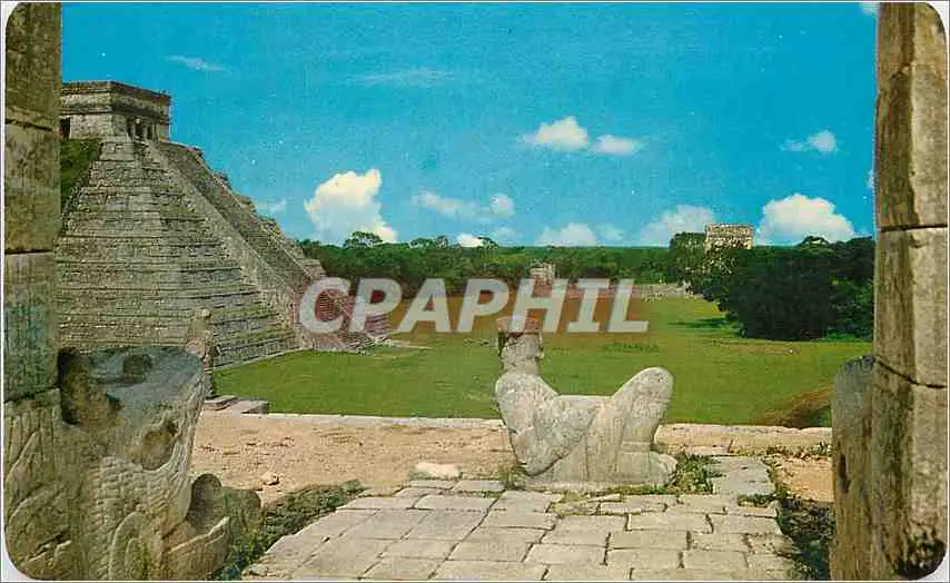Cartes postales moderne Chac-mool figure at the Temple of the Warriors THE CASTLE is in the background