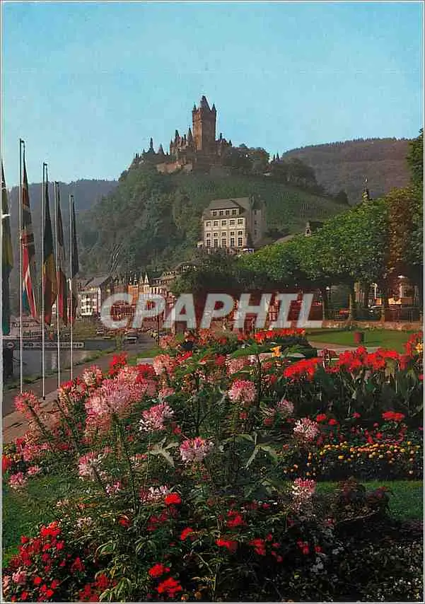 Cartes postales moderne Cochen an der Mosel parkanlage am moselufer mit blick zu reichsbug