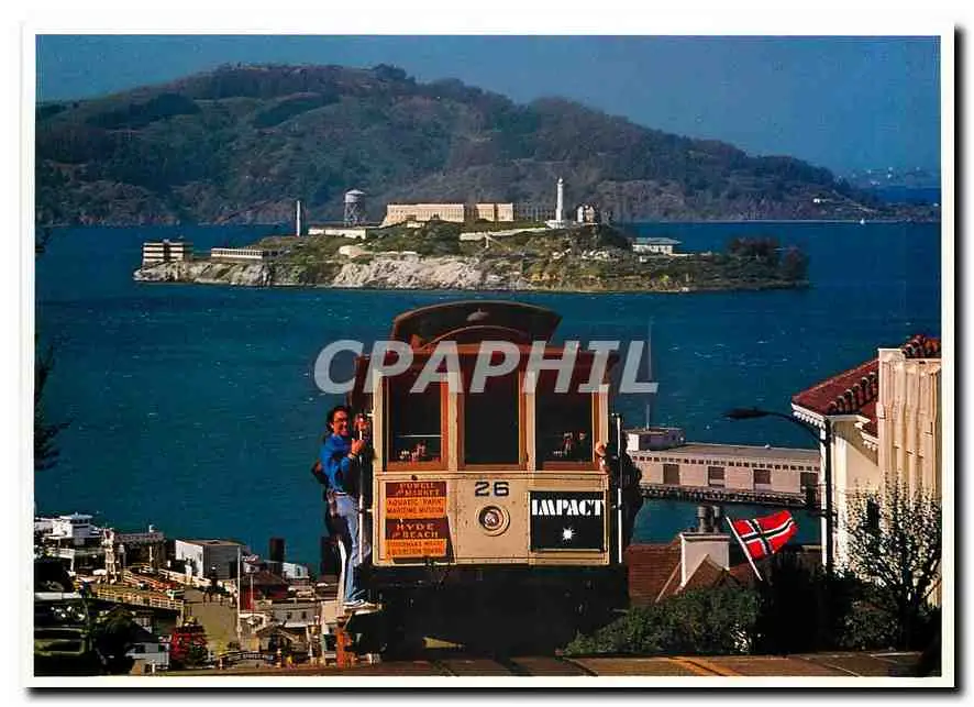 Cartes postales moderne Fun Fun Fun on a San Francisco Cable car with the famous Alcatraz prison island in the backgroun