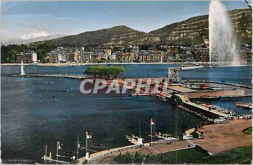 Cartes postales moderne Geneve La Jetee des Paquis Le Jet d'Eau (120 m) et le Mont Blanc (4810 m)