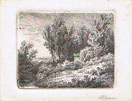 Mößmer, Joseph (1780 Wien 1845),, Landschaft mit Rastendem. Radierung