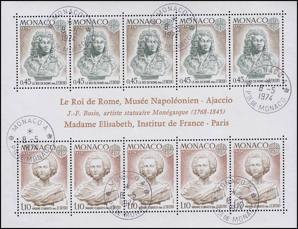 Monaco Block 7 Union européenne / CEPT: sculptures 1974, cachet du premier jour 8.5.74