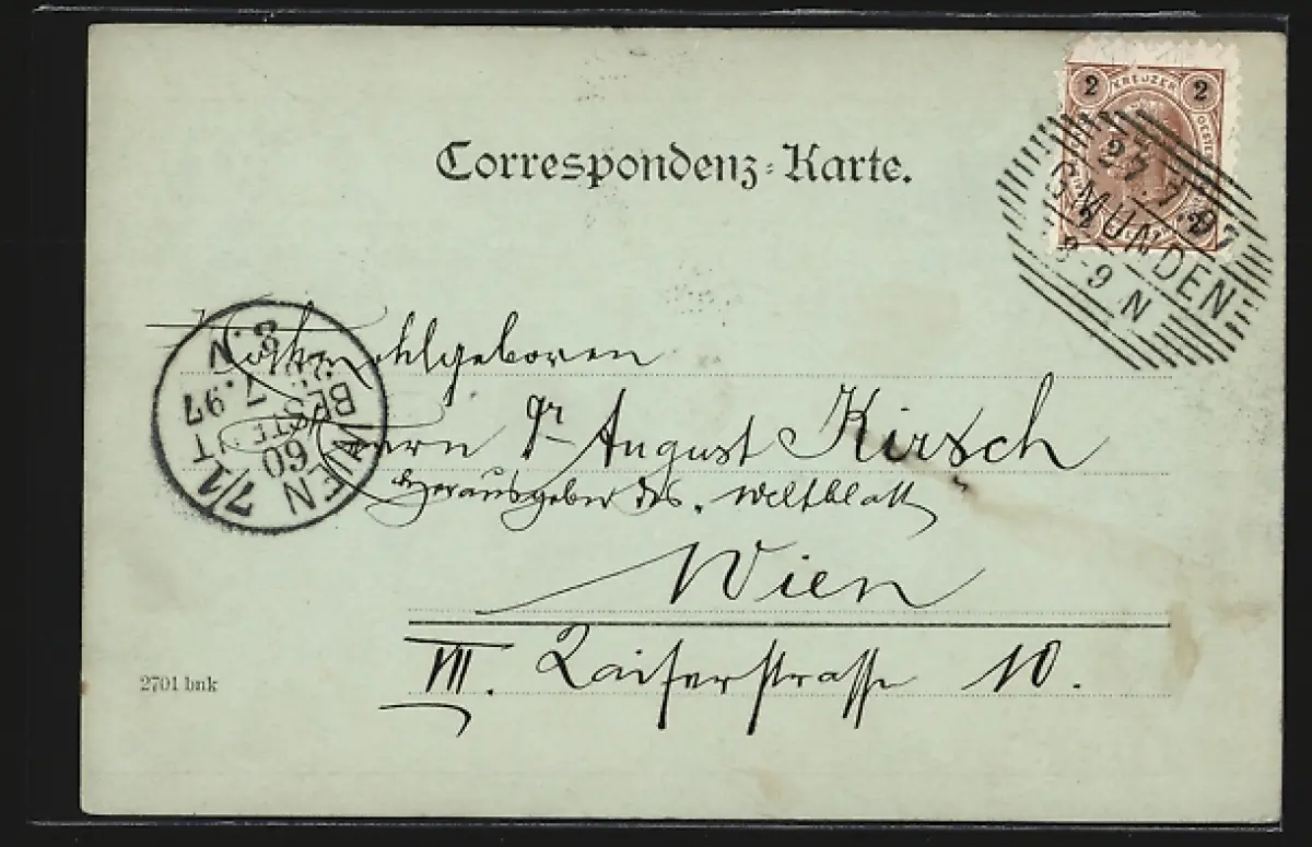 alte Ansichtskarte, gelaufen 1897, guter Zustand