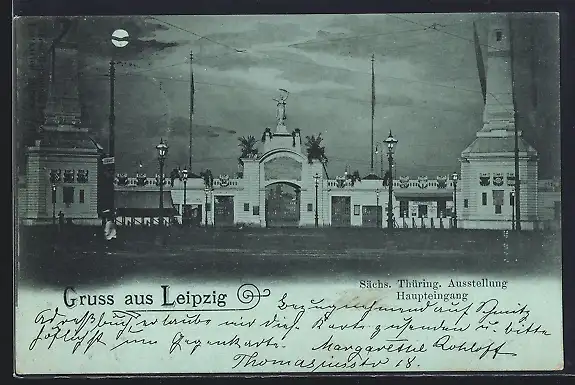 Mondschein-AK Leipzig, Sächs. Thüring. Ausstellung, Haupteingang