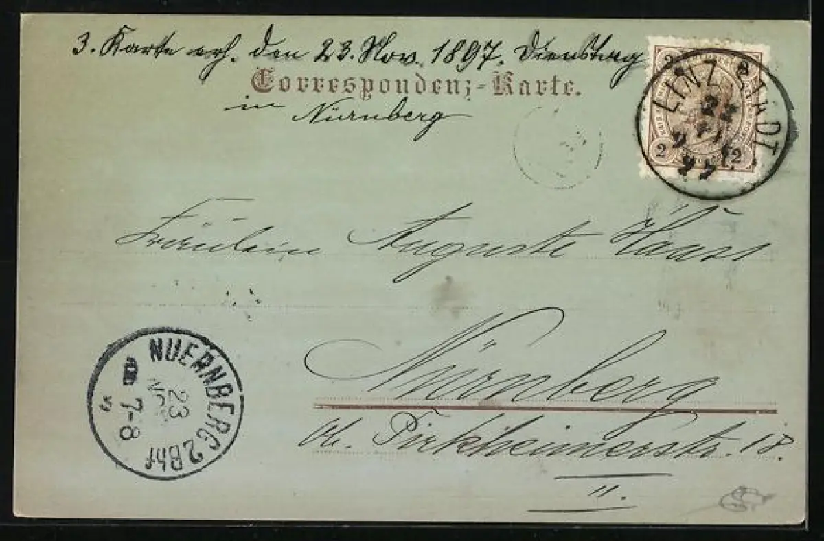 alte Ansichtskarte, gelaufen 1897, guter Zustand