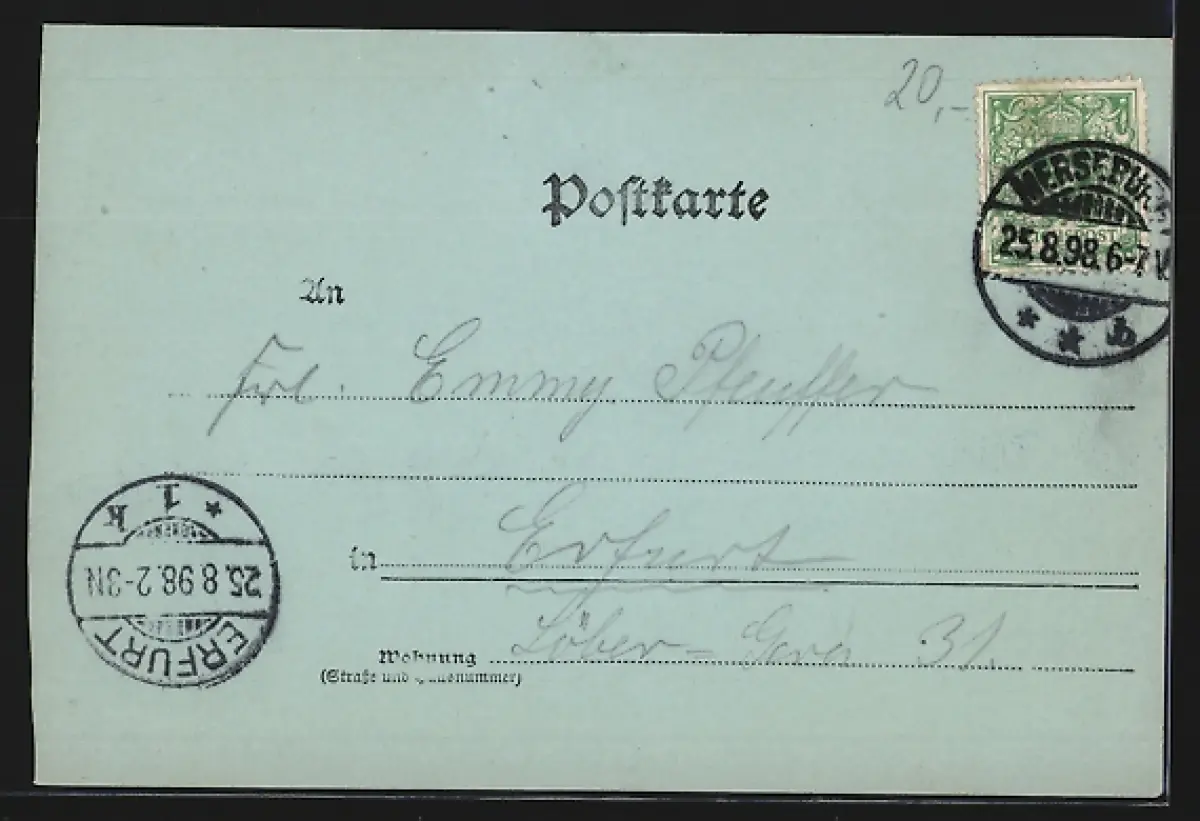 alte Ansichtskarte, gelaufen 1898, re. beschnitten