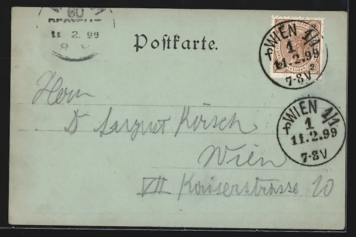 alte Ansichtskarte, gelaufen 1899, Stempelspur, guter Zustand