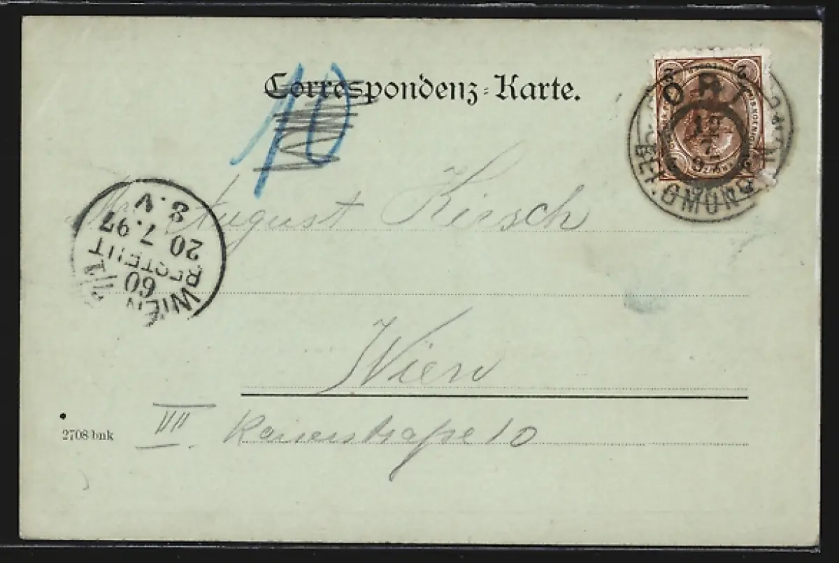 alte Ansichtskarte, gelaufen 1897, Eckknicke oben, guter Zustand