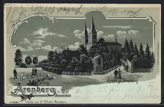 Mondschein-Lithographie Arenberg, Partie an der Kirche