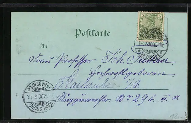 gelaufen 1900, Eckknick oben li., guter Zustand