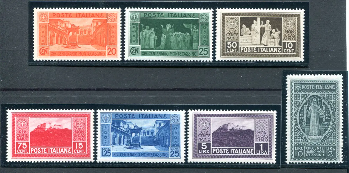 Montecassino Nr. 262/268 die Serie von ausgezeichneter Qualität und Zentrierung Vollgummi MNH - Montecassino Nr. 262/268 die Serie von hervorragender Qualität und Zentrierung - Kat. euro 125 Cod. 33/16