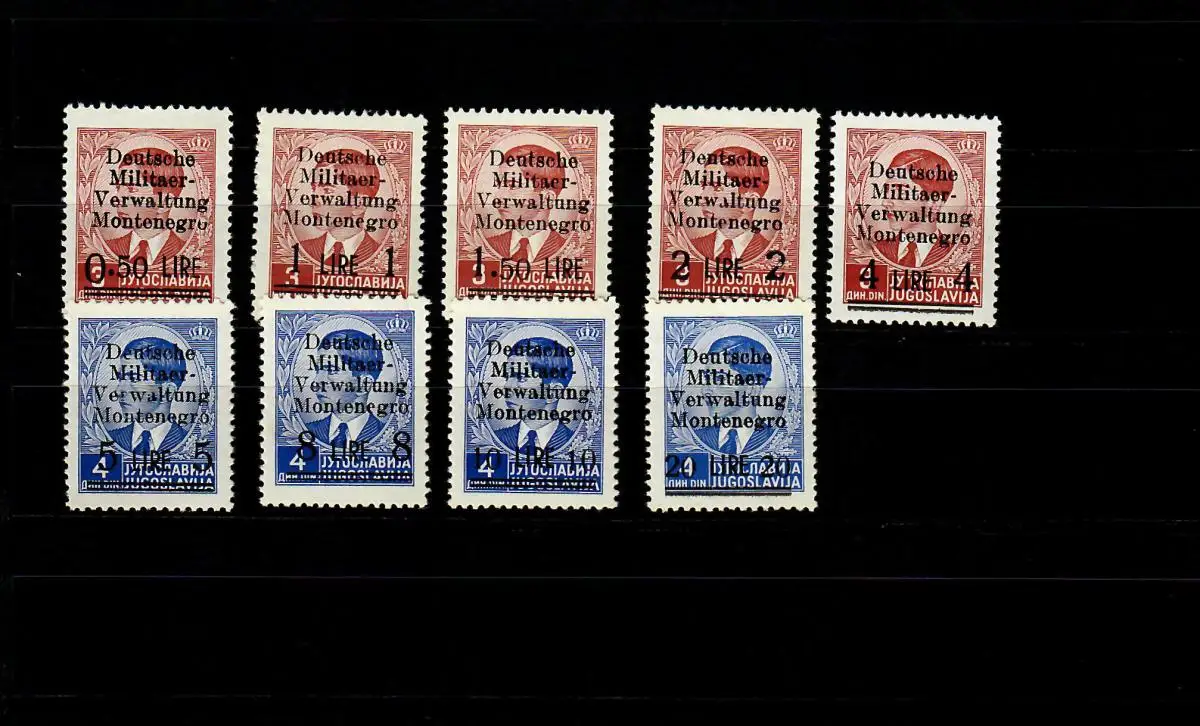 Monténégro: Min. 1-9, Falzspur, * avec 1I, 3I et 9III
