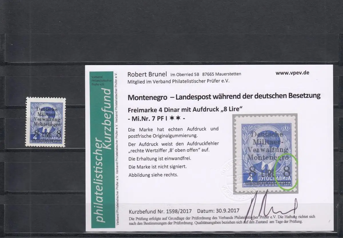 Monténégro: Mi Nr. 9 7 PF I, frais de port