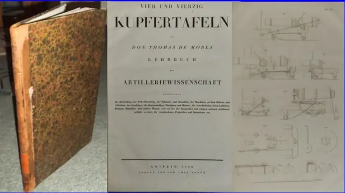 Titel: Vier und vierzig (44) Kupfertafeln zu Don Thomas de Morla Lehrbuch der Artilleriewissenschaft. Vorliegend der Atlas separat