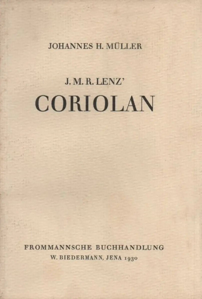 Müller, Johannes: J. M. R. Lenz' "Coriolan".