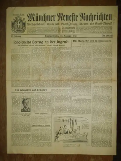 Titel: Münchner Neueste Nachrichten. Wirtschaftsblatt, Alpine und Sport-Zeitung, Theater und Kunst-Chronik. Die große Tageszeitung des deutschen Südens. Jahrgang 95, Nummer 248/249 vom Samstag/Sonntag, den 5./6. September 1942