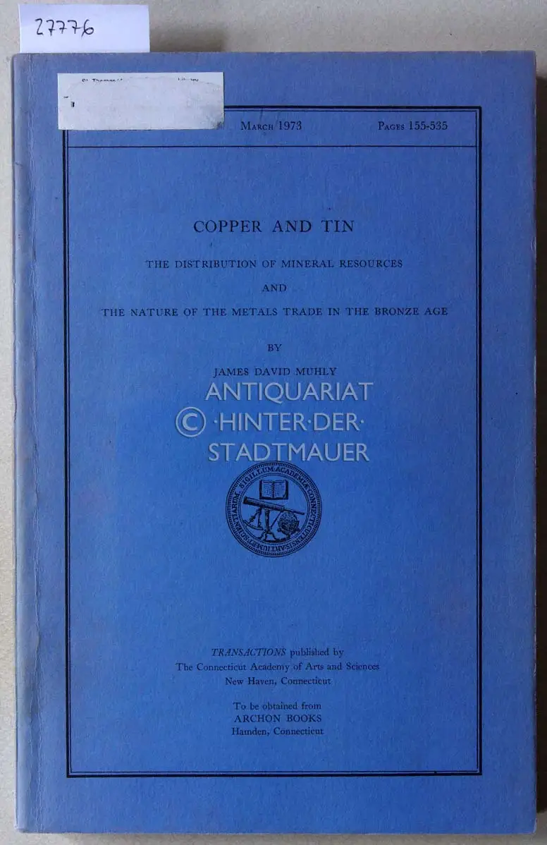 Muhly, James David: Copper and Tin. The Distribution of Mineral Resources and the Nature of the Metals Trade in the Bronze Age. [= Transactions, Vol. 43, March 1973].