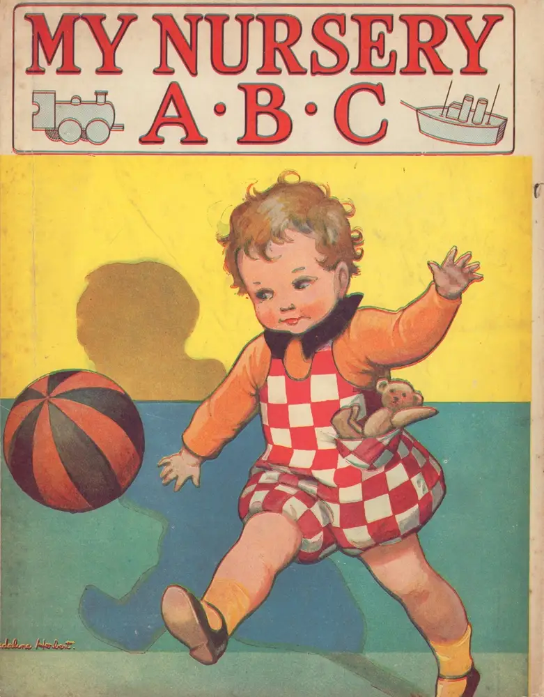 [My nursery A.B.C. / ABC]. - Englische Alphabet-Verse von A-Z sowie volkstümliche Kinderreime. - Vorderdeckel partiell wellig, Rückenfalz rissig; innen gut