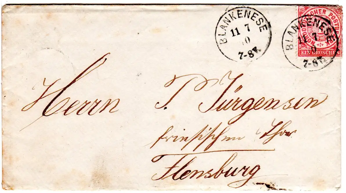 NDP, K1 Blankenese klar auf Brief m. 1 NGr. n. Flensburg