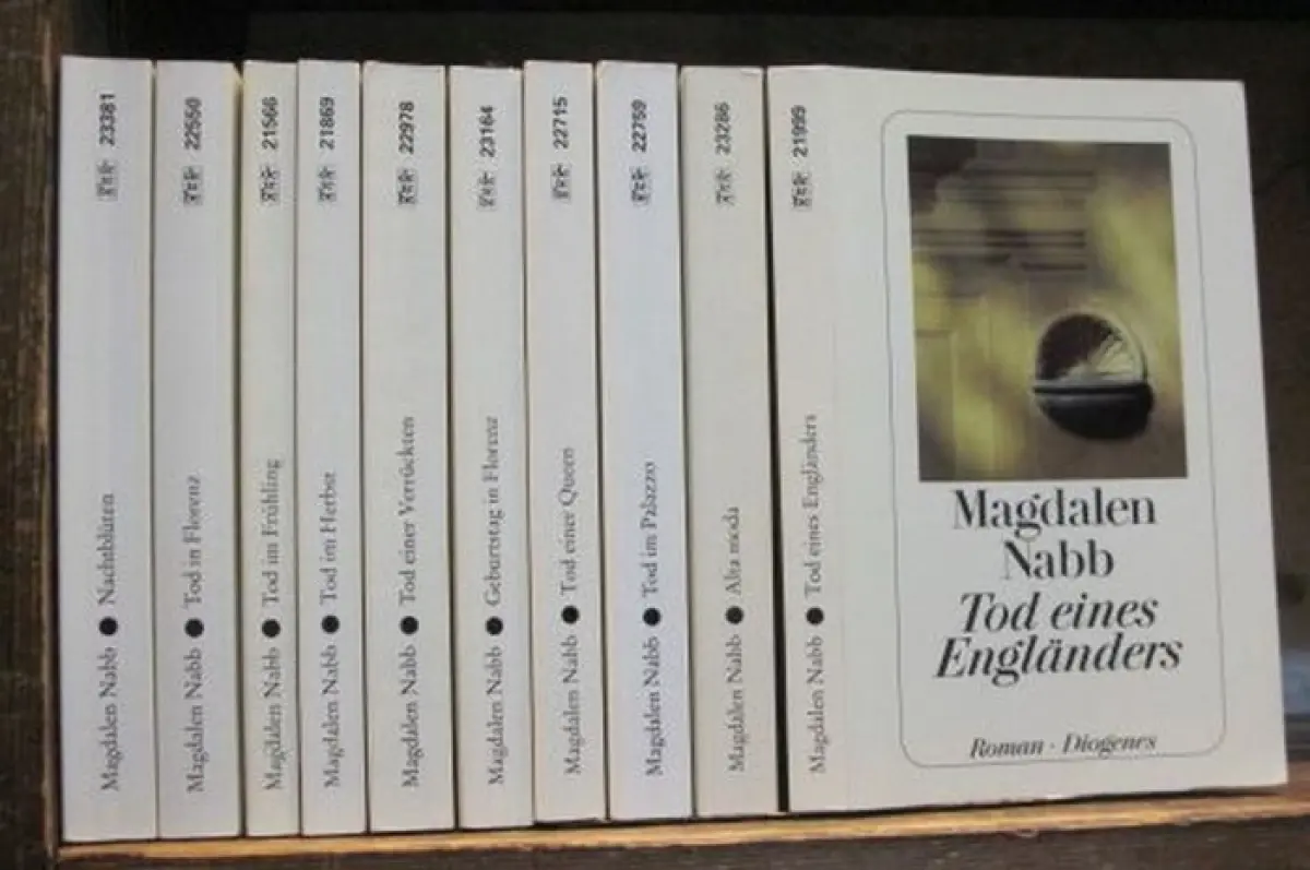Nabb, Magdalen: Konvolut mit 10 (von 14) Bänden: Band 1) Tod eines Engländers / 3) Tod im Frühling / 4) Tod im Herbst / 5) Tod in Florenz / 6) Tod einer Verrückten / 7) Tod einer Queen / 8) Tod im Palazzo / 9) Geburtstag in Florenz / 11) Alta moda / 12) N