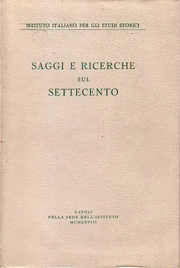 Publ. No. 22 di quest’ instituto, fondato di Benedotto Croce.--- Die 10 Beiträge behandeln demgemäß Spezialthemen des 'Settecento napoletano', z.B. Religions-, Rechts- u. Wirtschaftszustände der Region, den Hafen, Jesuitismus usw. im 18.Jhdt.