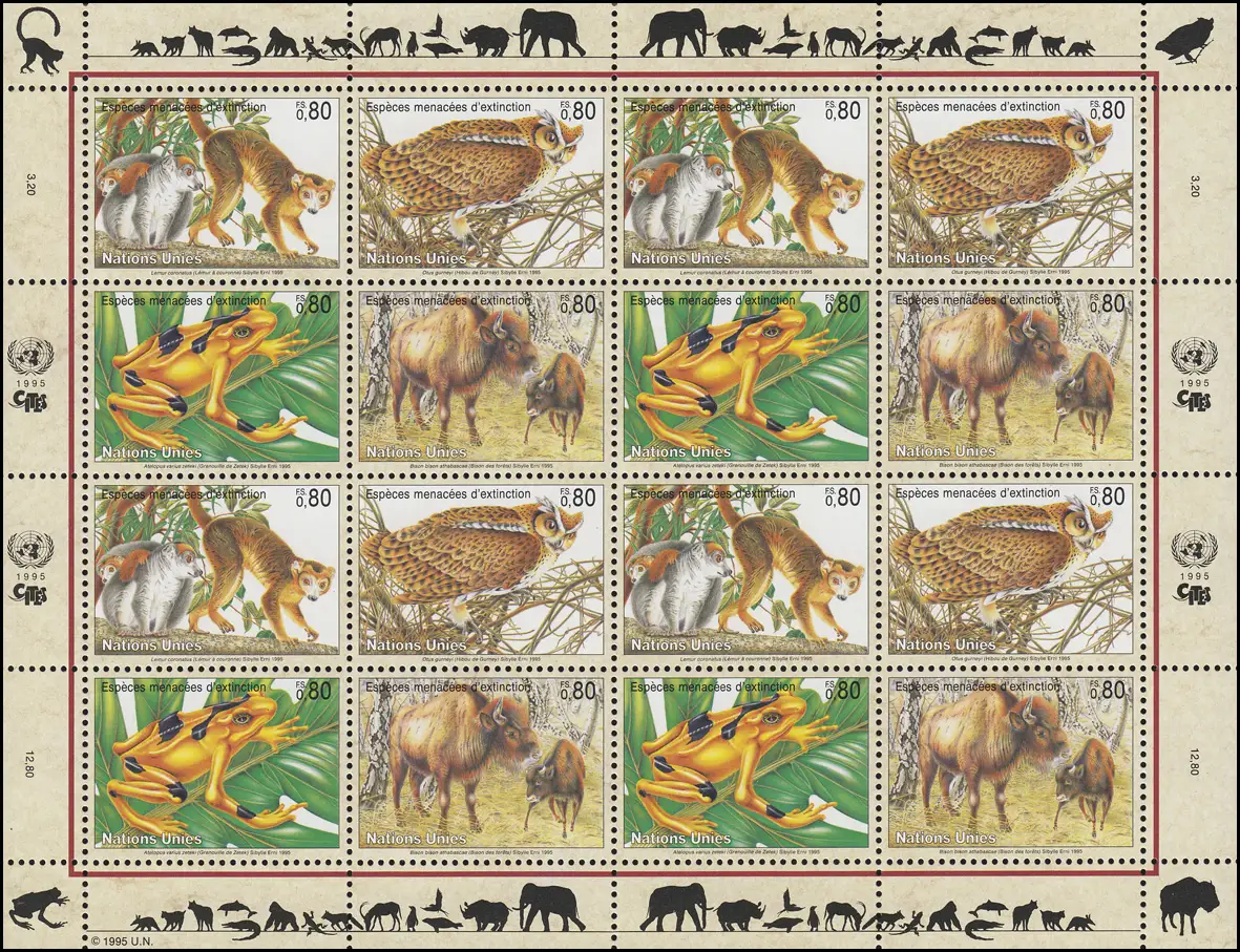 Nations unies Genève 263-266 Espèces menacées III - Faune 1995, Bogen ZD **